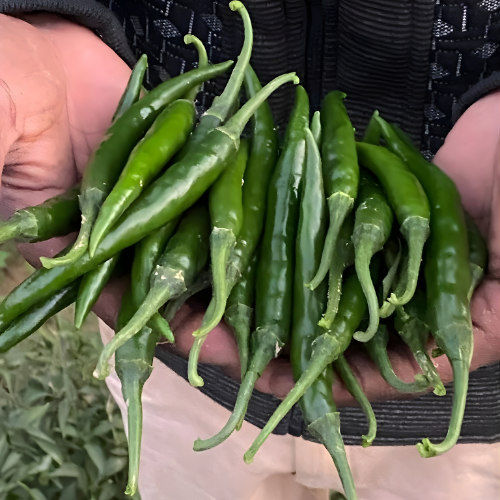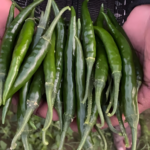 Attractive dark green fruit, length 10-12 cm. width 1.2 cm with good pungency.